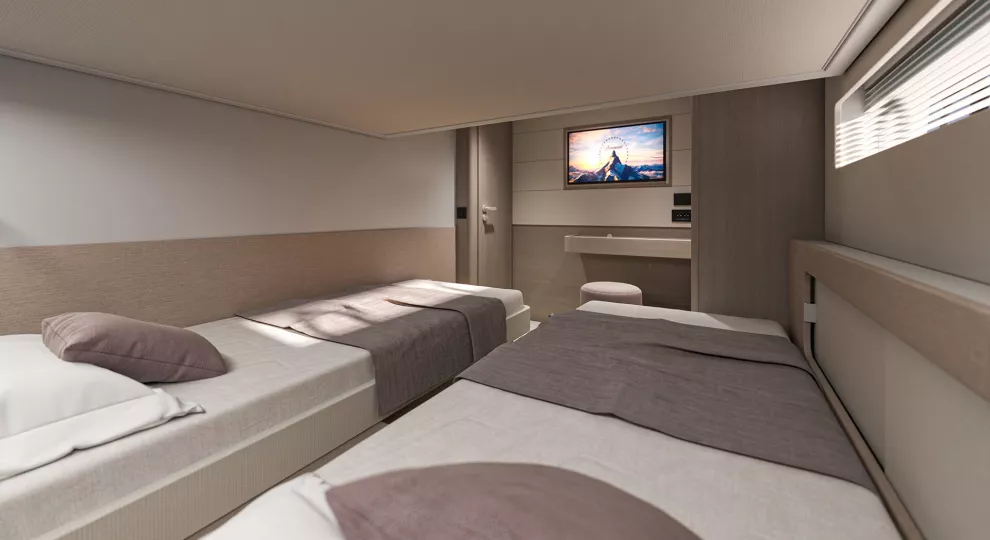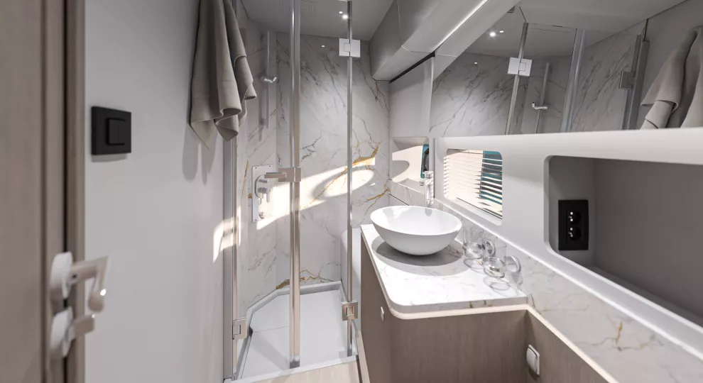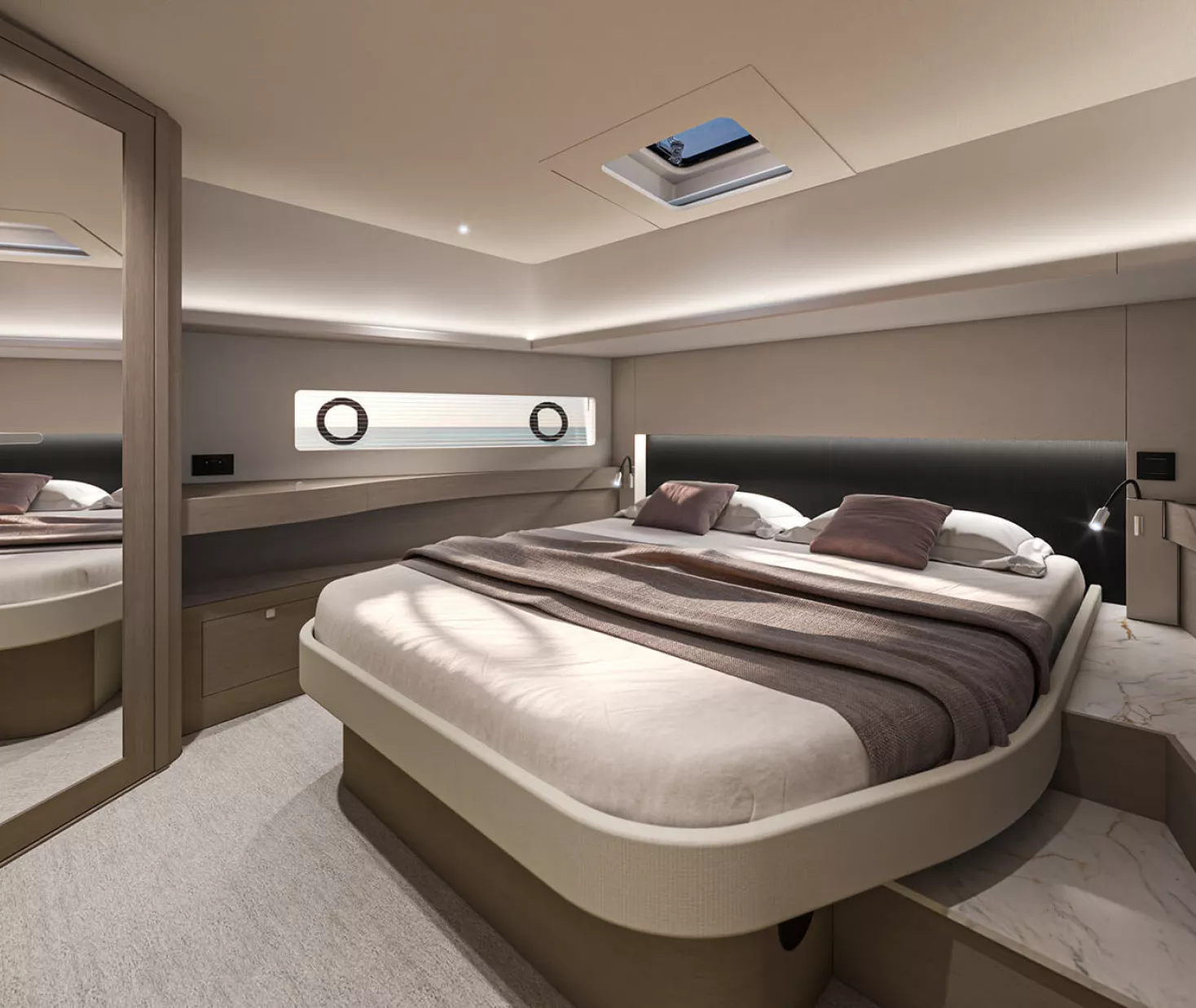 If this flagship’s exterior design can satisfy any mood, her stately interior is clearly a place of peace, combining serene colorways and materials with an exquisite study in physical comfort. The brand’s 140+ years of boatbuilding experience are on evident display, whether your attention lingers on the lighting, the volumes, the ergonomics or simply the overall fit and finishLiving aboard becomes just living, and that’s the way it should be.